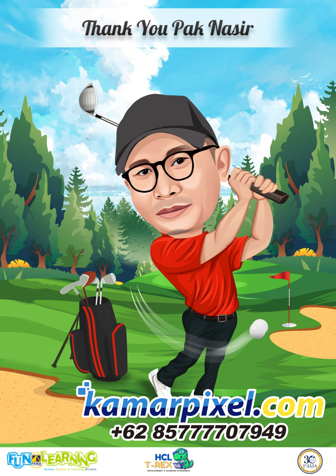 Memberikan karikatur dengan rekan atau mitra kerja bisa mempererat kerjasama. Apalagi kalau karikatur itu sesuai dengan hobinya seperti main golf maka tentu akan terasa lebih berkesan